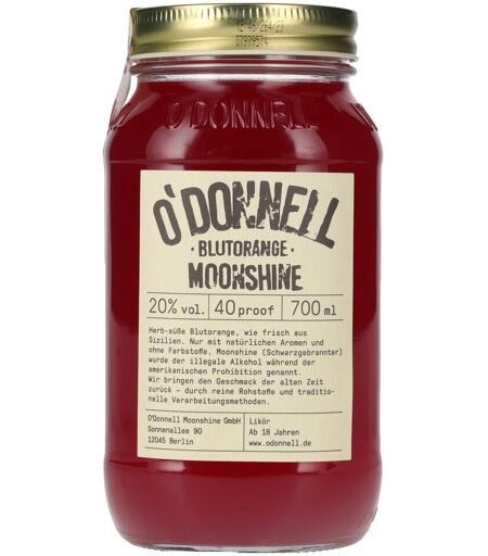 O'Donnell Moonshine bringt den rauen Charme der Prohibitionszeit in die moderne Welt und kombiniert traditionelle Handwerkskunst mit zeitgemäßen Ansprüchen. Inspiriert von der Zeit der amerikanischen Prohibition, als illegaler "Moonshine" heimlich in einfachen Destillen hergestellt wurde, bringt O'Donnell diesen authentischen Geist zurück – jedoch in einer legalen, hochwertigen Form. Jeder Moonshine von O'Donnell wird aus besten Zutaten in Deutschland nach traditionellen Verfahren destilliert und in originalen Mason Jars abgefüllt, die an die geheimen Flaschen der Schmuggler aus der Prohibitionszeit erinnern. Die Sommersorte Blutorange bringt das Gefühl eines endlosen Sommers in Sizilien direkt ins Glas. Der spritzig-erfrischende Geschmack von tiefroten Orangen verkörpert die pure Sonne und sorgt für ein unvergleichliches Genusserlebnis. Besonders spannend ist die harmonische Kombination aus dezent herben Noten und der fruchtigen Süße der Orangen, die durch eine leichte Beeren-Nuance ergänzt wird. Dieses ausgewogene Zusammenspiel macht die Sorte Blutorange zu einer erfrischenden und vielseitigen Wahl für warme Sommertage. Farbe: Tiefes Rot. Nase: Fruchtig, leicht herb. Geschmack: Frisch, furchtig, süßlich, leicht bittere Anklänge. Abgang: Lang anhaltend. Eignet sich perfekt für eine Vielzahl von Cocktails und Longdrinks, bietet aber auch ein hervorragendes Geschmackserlebnis beim puren Genuss auf Eis. ...