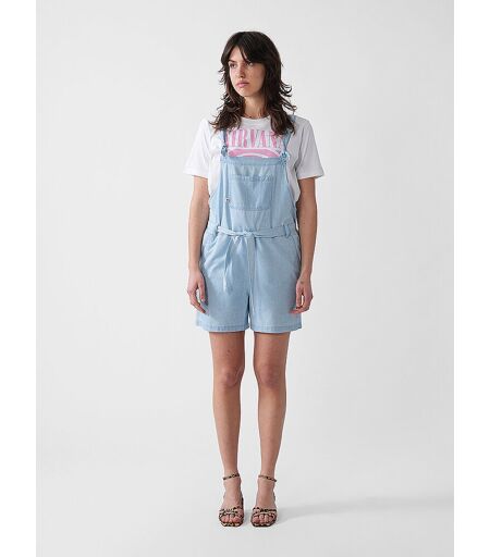 Damen Jumpsuit aus leichtem Denim Angenehmer Baumwoll-Viskose-Mix Träger Ärmellos Mit Eingrifftasche vorne Binde-Details Kurzes Bein Helle Waschung Farbbezeichnung: Light Blue Denim Material: 60% Baumwolle, 40% Viskose ...