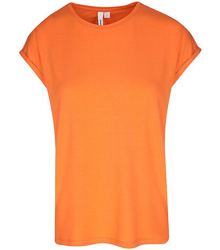 Damen T-Shirt aus Jersey Rundhalsausschnitt Kurzarm mit Umschlag Gerade geschnitten Unifarben Farbbezeichnung: Orange Material: 48% Viskose, 47% Polyester, 5% Elasthan ...