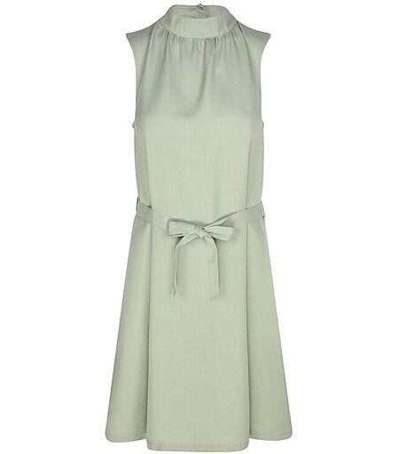 Damen Kleid aus Lyocell Enger Rundhalsausschnitt Ärmellos Mit Bindegürtel an der Taille Unifarben Knieumspielende Länge Farbbezeichnung: Dusty Green Material: 100% Lyocell ...