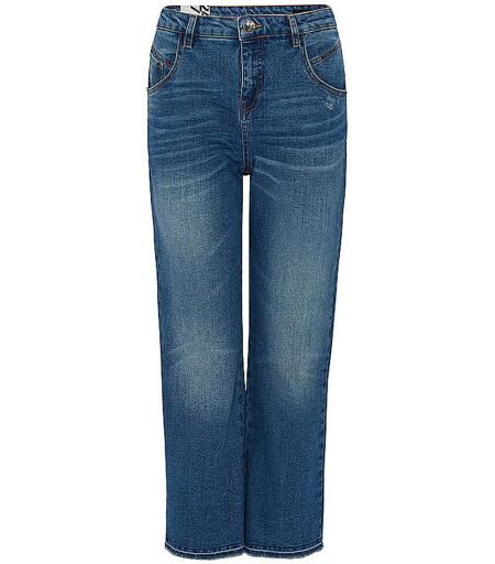 Damen Jeans aus Denim mit Stretch-Anteil Klassischer Hosenverschluss Seitliche Eingriffstaschen Zwei Gesäßtaschen Unifarben Leicht ausgestelltes Bein Gewaschene Optik Verkürzte Länge Feine Fransen am Beinabschluss Mittlere Leibhöhe Farbbezeichnung: Milk Material: 97% Baumwolle 3% Elasthan ...