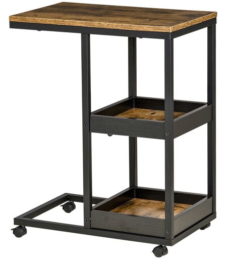 HOMCOM Beistelltisch, Couchtisch mit Rollen, Ablage, Kaffeetisch im Industrie-Stil für Wohnzimmer, Schlafzimmer, Dunkelbraun, 51 x 33 x 66 cm