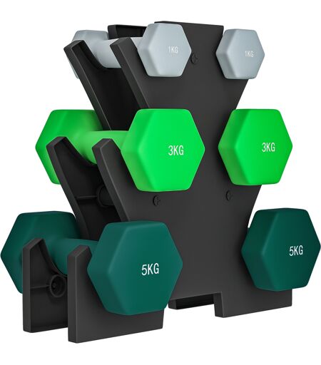 SPORTNOW Hanteln Set 6 Kurzhanteln mit Hantelständer, 2 x 1kg, 2 x 3kg, 2 x 5kg Hantelset aus Metall für Fitness, Gymnastik, Zuhause