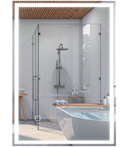 HOMCOM LED-Badezimmerspiegel Wandspiegel 80x60cm, beschlagfrei mit Touchschalter, IP44 für modernes Badezimmer .de