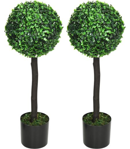 HOMCOM Künstliche Pflanzen, 2er-Set UV-beständige Zimmerpflanze, 60 cm Buchsbaum, Kunstpflanze mit Blumentopf, Kunstbaum, PEVA, Grün