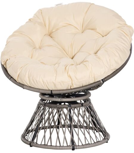Outsunny Papasansessel Korbsessel 360 Grad Liegeschale mit Sitzpolster aus Kunstrattan und Metallrahmen 87 x 97 x 86 cm Creme .de