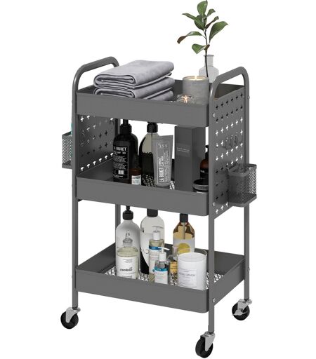 HOMCOM Rollwagen Servierwagen mit 3 Etagen und 2 Hängekörben, Küchenwagen mit Griff, Beistellwagen aus Stahl in Dunkelgrau für Küche und Haushalt .de