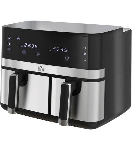 HOMCOM Heißluftfritteuse 8,5L Doppelkammer 8in1 Rezeptur Airfryer Antihaftbeschichtung Touchscreen Smart Timer ohne Öl Schwarz
