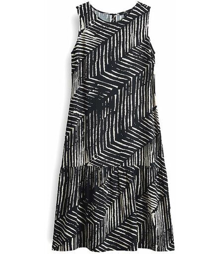 Damen Midikleid aus reiner Viskose Rundhalsausschnitt Breite Träger Knopf mit Öse im Rückenteil Allover-Print Volant mit Kräuselung Lockere Passform Länge: Ca. 114 cm Farbbezeichnung: Black Material: 100% Viskose ...