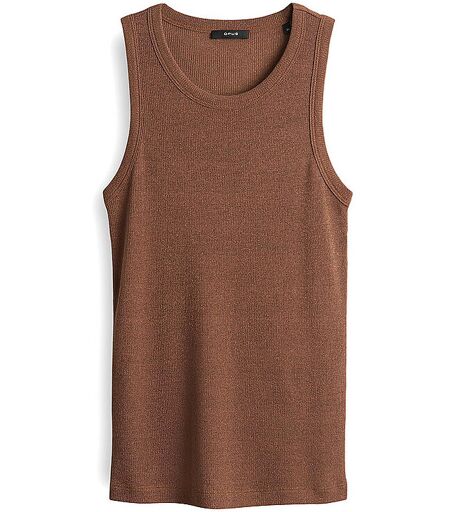 Damen Top aus aus hochwertigem Viskose-Mix Rundhalsausschnitt Ärmellos Rippstruktur Elastischer Stoff Schimmernde Oberfläche Figurbetonte Passform Unifarben Farbbezeichnung: Golden Oak Material: 70% Viskose, 15% Polyamid, 15% Metall ...