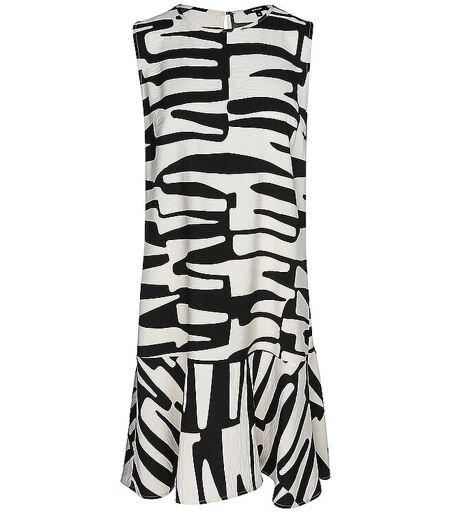 Damen Minikleid aus Viskose-Mischung Rundhalsausschnitt Breite Träger Grafischer Print Eingrifftaschen in den Seiten Volant mit Kräuselung Lockere Passform Länge: Ca. 93,5 cm Farbbezeichnung: Black Material: 85% Viskose, 15% Polyamid ...