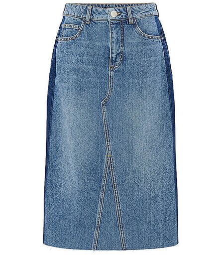Der Jeansrock erhält durch den seitlichen Galonstreifen und die offene Saumkante einen frischen, sportlichen Look und lässt sich sowohl lässig als auch elegant kombinieren. Damen Midirock aus Baumwoll-Denim Bund mit Gürtelschlaufen Schließt mit Knopf- und Reißverschluss 5-Pocket-Style OSaum Leder Patch Seitlicher Galonstreifen Unifarben mit heller Waschung Farbbezeichnung: Mid Strong Blue Material: 100% Baumwolle ...