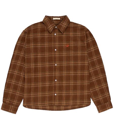 Herren Hemd aus weichem Flanell Kentkragen Langarm Logostickerei auf der Brust Schließt mit Knopfleiste Oversized Fit Karomuster Farbbezeichnung: Brown Material: 69% Baumwolle 31% Viskose ...