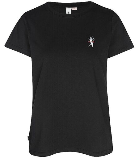Damen T-Shirt aus Baumwoll-Mischung Rundhalsausschnitt Kurzarm Niedliche Stickerei auf der Brust Gerade Passform Farbbezeichnung: Black Material: 60% Baumwolle, 40% Polyester ...
