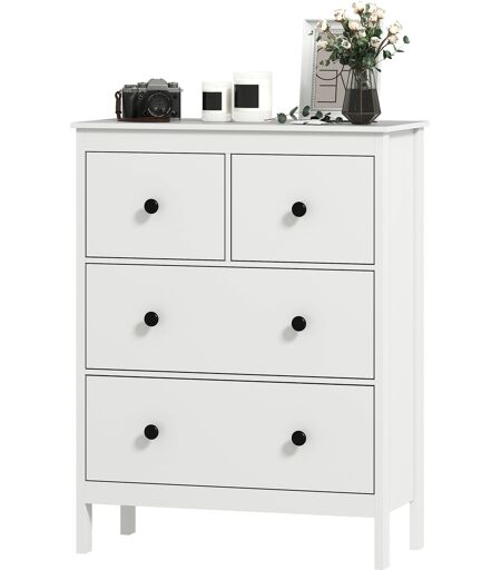 HOMCOM Kommode Sideboard mit 4 Schubladen Moderner Aufbewahrungsschrank Schubladenschrank für Wohnzimmer Schlafzimmer Flur 74 x 35 x 97 cm Weiß
