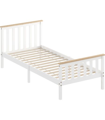HOMCOM Bett 90 x 200 cm Bettrahmen mit Lattenrost, Unterbettaufbewahrung, Einzelbett aus Holz, Bettgestell mit Kopfteil, einfache Montage für Schlafzimmer Gästezimmer Natur+ Weiß