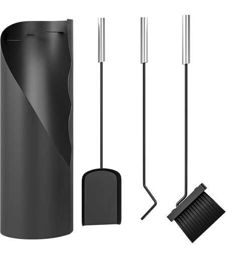 Outsunny Kaminbesteck Set 4-teilig Kaminzubehör mit Besen, Schaufel, Schürhaken und Korb, Kamingarnitur, Metall, Schwarz