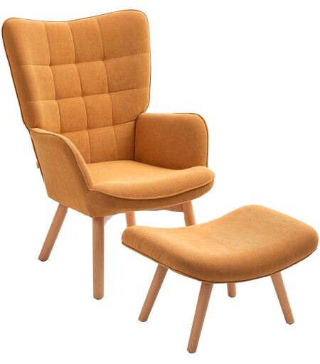 HOMCOM Sessel mit Hocker, Ohrensessel mit Hoher Rückenlehne, Holzbeine, Loungesessel mit getuftetem Design, Cord-Optik, für Wohnzimmer, Braun