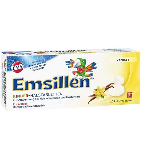 Wirkstoffe / Inhaltsstoffe / Zutaten126 mg Emser Salz, natürlichBourbon-Vanille Pulver Hilfstoff (+)Calcium (palmitat, stearat) Hilfstoff (+)Isomalt Hilfstoff (+)Sucralose Hilfstoff (+)Vanille Aroma Hilfstoff (+)Emsillen Kinder Halstabletten können in Ihrer Versandapotheke www.apotheke.at erworben werden. ...