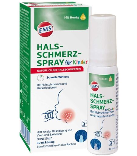 Anwendungsgebiet von EMS Halsschmerz-Spray für KinderEMS Halsschmerz-Spray für Kinder speziell für Kinder ab 3 Jahren kann die Rachenentzündungen sanft lindern – und das mit einer 100 % natürlichen Wirkweise!Wirkstoffe / Inhaltsstoffe / Zutaten Inhaltsstoffe von EMS Halsschmerz-Spray für Kinder : #IFAP#BienenhonigHolunderbeeren-ExtraktSchwarze Johannisbeere Früchte ExtraktTraubenkern ExtraktGlycerol Hilfstoff (+)Wasser, gereinigt Hilfstoff (+)GegenanzeigenBei bekannter Überempfindlichkeit gegen einzelne Inhaltsstoffe sollte EMS Halsschmerz-Spray für Kinder nicht angewendet werden.EMS Halsschmerz-Spray für Kinder können in Ihrer Versandapotheke www.apotheke.at erworben werden. ...