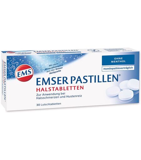 EMSER Pastillen® ohne Menthol Emser Pastillen befeuchten und reinigen die Hals- & Rachenschleimhaut und lindern dadurch schnell bei: Halsschmerzen Heiserkeit Hustenreiz Bei entzündlichen Erkrankungen puffern Emser Pastillen den Säurestress der Rachenschleimhaut und lösen festsitzende Beläge. Sie stimulieren den Speichelfluss, das körpereigene Schmiermittel“, und beruhigen so die angegriffenen Schleimhäute. Mit dem vermehrten Speichelfluss nimmt auch die Ausschüttung von Antikörpern zu, so dass auf natürliche Weise die körpereigene Abwehr gestärkt wird. Dank ihrer Zusammensetzung und des natürlichen Wirkstoffs werden Emser Pastillen von Vielrednern, Sängern und Stimmtherapeuten ebenso geschätzt wie von Kindern und Senioren. Frei von ätherischen Ölen und daher besonders für Sänger und Vielredner sowie Kinder und Schwangere geeignet. Homöopathieverträglich. Wie viel und wie oft sollten Sie Emser Pastillen® Halstabletten ohne Menthol anwenden? Emser Pastillen® Halstabletten dürfen nur von Kindern angewendet werden, die bereits die Fähigkeit zum kontrollierten Lutschen erworben haben – dies ist meist im Alter von 3 Jahren gegeben. Bei ersten Anzeichen einer Entzündung wie Halsschmerzen, Schluckbeschwerden, Husten- reiz oder Heiserkeit, vor oder während größerer Stimmbelastung können Kinder bis 6 Jahre je nach Bedarf bis zu 4-mal täglich eine Tablette, Kinder über 6 Jahre und Erwachsene bis zu 6-mal 1 bis 2 Tabletten lutschen oder langsam im Mund zergehen lassen. Inhalststoffe: Eine Lutschtablette enthält 126 mg Natürliches Emser Salz. Als Hilfsstoffe sind enthalten: Saccharose, sprühgetrocknetes arabisches Gummi, Stearinsäure, Tragant, Calciumstearat, Vanilleextrakt. ...