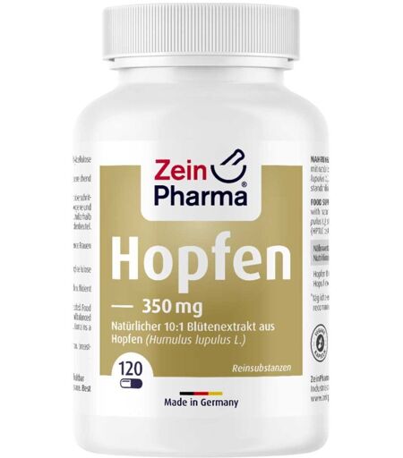 Anwendungsgebiet von Hopfen 350 mg von ZEINpharmaHopfen 350 mg von ZEINpharma enthalten Hopfen, die Kletterpflanze ist reich an sekundären Pflanzenstoffen und wird bereits seit vielen Jahren in Bezug auf ihre beruhigende und schlaffördernde Wirkung erforscht.Wirkstoffe / Inhaltsstoffe / ZutatenZutaten von Hopfen 350 mg von ZEINpharma: Hopfen Blütenextrakt 10:1, Hydroxypropylmethylcellulose (Kapsel), Antioxidationsmittel: Ascorbylpalmitat
