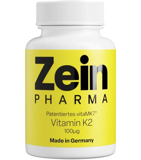 Anwendungsgebiet von Zeinpharma Vitamin K2 100 Μg Kapseln• Bioaktives MK-7 für optimale Aufnahme – Enthält hochwertiges Vitamin K2 (MK-7) mit exzellenter Bioverfügbarkeit und einer langen Verweildauer von bis zu 48 Stunden im Blut. • Gezielte Unterstützung für Knochen & Gefäße – Trägt zur Erhaltung normaler Knochen, einer normalen Blutgerinnung und zur natürlichen Elastizität der Blutgefäße bei. • Hochreines vitaMK7® – Patentiertes, sojafreies Vitamin K2 mit über 99 % all-trans MK-7, gewonnen durch ein schonendes Fermentationsverfahren mit Bacillus subtilis natto. • Perfekt kombinierbar mit Vitamin D – Optimal als Ergänzung zu 1.000–2.000 I.E. Vitamin D, um den Calciumstoffwechsel zu unterstützen. • Geprüfte Premium-Qualität – Strenge ISO-, HACCP- und FSSC 22000-Kontrollen garantieren Reinheit und höchste Standards. • Vegan & allergenfrei – Frei von tierischen Inhaltsstoffen, Gluten, Laktose und Soja – ideal für Veganer & Allergiker. • Ohne unnötige Zusatzstoffe – Frei von Konservierungsstoffen, Farbstoffen und Magnesiumstearat – nur das Wesentliche für deine Gesundheit. • Hergestellt in Deutschland – Entwickelt und produziert in Nauheim, Hessen unter pharmazeutischen Qualitätsstandards. • Familientradition seit 1999 – Ein Unternehmen mit Leidenschaft für hochwertige Nahrungsergänzungsmittel.Wirkstoffe / Inhaltsstoffe / ZutatenZutaten von Zeinpharma Vitamin K2 100 Μg Kapseln:Füllstoff: mikrokris¬talline Cellulose, VitaMK7® Menachinon-7 (Vitamin K2), Hydroxypropylmethylcellulose (Kapsel), Antioxida¬tionsmittel: Ascorbylpalmitat.GegenanzeigenBei bekannter Überempfindlichkeit gegenüber einen der oben genannten Inhaltsstoffe sollte dieses Produkt nicht angewendet werden.DosierungVerzehrempfehlung von Zeinpharma Vitamin K2 100 Μg Kapseln:Täglich 1 Kapsel unzerkaut mit ausreichend Wasser, optimal zu einer fetthaltigen Mahlzeit.Alterna ...