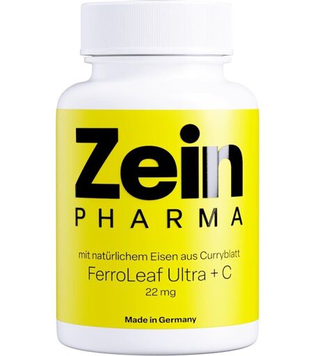Anwendungsgebiet von Zeinpharma Ferroleaf Ultra+c 22 Mg KapselnZeinpharma Ferroleaf Ultra+c 22 Mg Kapseln kombinieren 22 mg pflanzliches Eisen aus Curry-Blatt-Extrakt mit 12 mg Vitamin C aus Hagebutten-Extrakt – eine synergistische Kombination, die für eine optimale Aufnahme sorgt.Warum Eisen wichtig ist:Trägt zur normalen Bildung von roten Blutkörperchen und Hämoglobin beiUnterstützt den normalen Sauerstofftransport im KörperHilft, Müdigkeit und Erschöpfung zu verringernTrägt zu einer normalen kognitiven Funktion beiWirkstoffe / Inhaltsstoffe / ZutatenZutaten von Zeinpharma Ferroleaf Ultra+c 22 Mg Kapseln:Curry Blatt-Extrakt (Eisen), Hydroxypropylmethylcellulose (Kapsel), Hagebutte Frucht-Extrakt (Vitamin C), Antioxidationsmittel: Ascorbylpalmitat.GegenanzeigenBei bekannter Überempfindlichkeit gegenüber einen der oben genannten Inhaltsstoffe sollte dieses Produkt nicht angewendet werden.DosierungVerzehrempfehlung von Zeinpharma Ferroleaf Ultra+c 22 Mg Kapseln:Täglich 1 Kapsel unzerkaut mit ausreichend Wasser, optimal auf nüchternen Magen (min. 30 Min vor oder 1-2 Stunden nach einer Mahlzeit).Alternative Einnahme: Die Kapseln können geöffnet und das Pulver direkt eingenommen werden.HinweiseNahrungsergänzungsmittel stellen keinen Ersatz für eine abwechslungsreiche Ernährung dar. Eine ausgewogene Ernährung und gesunde Lebensweise sind wichtig. Die empfohlene tägliche Verzehrmenge sollte nicht überschritten werden. Außerhalb der Reichweite von kleinen Kindern aufbewahren. Kühl und trocken lagern.Zeinpharma Ferroleaf Ultra+c 22 Mg Kapseln können in Ihrer Versandapotheke www.apotheke.at erworben werden. ...