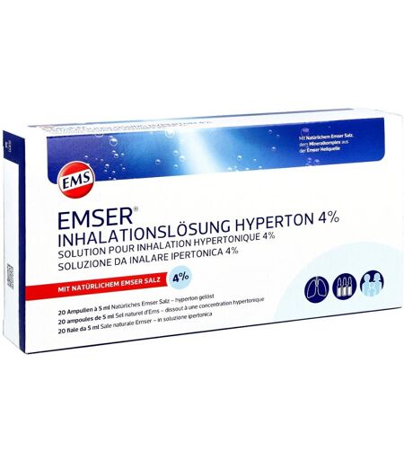 Emser Inhalationslösung Hyperton 4% eignet sich außerdem als Trägerlösung zur Inhalation von Arzneimitteln, siehe die Hinweise in der Gebrauchsanleitung.