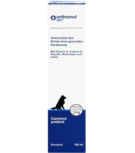 Anwendungsgebiet von Orthomol Vet Canimol Prebiot Emulsion für HundeOrthomol Vet Canimol Prebiot Emulsion für Hunde ist ein Ergänzungsfuttermittel für Hunde. Es enthält wichtige