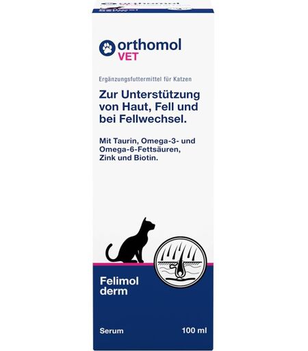 Anwendungsgebiet von Orthomol Vet Felimol Derm Serum für KatzenOrthomol Vet Felimol Derm Serum für Katzen ist ein Ergänzungsfuttermittel für Katzen. Es enthält wichtige
