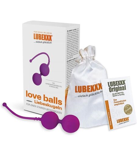 Anwendungsgebiet von Lubexxx love balls Liebeskugeln für Beckenbodentraining lilaLubexxx love balls Liebeskugeln für Beckenbodentraining lila sind Ihre Fitnesstrainerin für Ihren Intimbereich zur Steigerung des Lustempfindens. Sehr hoher Tragekomfort, diskret und ganz einfach zu benutzen. Die love balls sind wie ein Trainingsgerät für die Beckenbodenmuskulatur, die zu einer stärkeren Empfindsamkeit und ein engeres Gefühl führen und somit die Orgasmusfähigkeit fördern können. Für mehr Spaß und Freude am Sex. Die Kugeln sind aus hochwertigem Qualitätssilikon und samtweich. Durch die ergonomische Form können sie besonders einfach eingeführt werden. Mit flexiblem Rückholbändchen für ein jederzeit einfaches Entfernen. Inkl. LUBEXXX Original Gleitgel Probe für ein sanftes Einführen. Mit praktischem hygienischem Aufbewahrungsbeutel zum diskreten Verstauen.