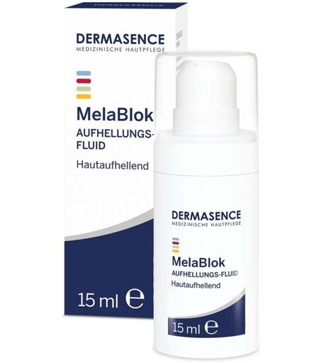 DERMASENCE MelaBlok Die Intensivpflege hellt durch einen Tyrosinasehemmer Pigmentflecken auf und mindert die Melanin Neubildung. Mit einem Fruchtsäurekomplex, Vitamin C und Q-10 schützt das Aufhellungs-Fluid die Haut vor oxidativen Zellschäden und sorgt für einen gleichmäßigen Teint. Bei längerer UV-Exposition unbedingt mit einem hohen Lichtschutzfaktor kombinieren. Charakteristik: Intensivpflege hellt Pigmentflecken auf und hemmt die Melaninbildung Fruchtsäurekomplex sorgt für eine gleichmäßigere Melaninverteilung, fördert so zusätzlich die Aufhellung Die Haut erhält einen gleichmäßigen Teint Vitamin C und Q-10 schützen vor oxidativen Zellschäden Produktbedingtes Kribbeln ist unbedenklich Frei von dermatologisch bedenklichen Duftstoffen Dermatologisch getestet Anwendung:Morgens und abends auf die betroffenen Areale auftragen, sanft einklopfen. Tagsüber hohen Lichtschutzfaktor, z.B. DERMASENCE Solvinea LSF 50, auftragen oder Sonnenexposition ganz meiden! Anwendungsdauer von mindestens acht Wochen wird empfohlen. INCI: AQUA, PEG-40 Hydrogenated Castor Oil, Glycolic Acid, Gluconolactone, Propanedi ol, Boerhavia Diffusa Root Extract, Hexylresorcinol, Simmondsia Chinensis Seed Oil, Phenoxyethanol, Sucrose Palmitate, Butylene Glycol, Glyceryl Linoleate, Prunus Amygdalus Dulcis (Sweet Almond) Oil, Glycyrrhiza Glabra (Licorice) Root Extract, Mangnesium Ascorbyl Phosphate, Undaria Pinnatifida Extract, Ubiquinone, Xanthan Gum, Ethylhexylglycerin, Benzyl Alcohol, Potassium Sorbate, Propylene Glycol, Ascorbyl Palmitate, Glyceryl Stearate, Glyceryl Disterate, Citric Acid, BHT. ...