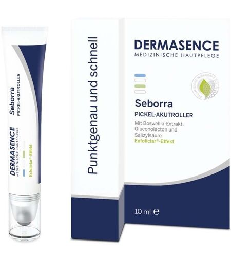 Pickelstopp - wirkt punktgenau und schnellDas leicht zu applizierende Gel ist ideal bei den ersten Anzeichen von Pickelbildung. Boswelliaextrakt wirkt Rötungen und Schwellungen entgegen. Druckgefühl und Reizungen werden schnell gemindert. Gluconolacton, eine milde natürliche Fruchtsäure, wirkt erneuter Komedonenbildung effektiv entgegen und verfeinert das Hautbild. Der Rollstift mit Edelstahlkugel garantiert eine hygienische Anwendung. Das Gel bei den ersten Merkmalen von Rötungen, Schwellungen oder Druckgefühl punktuell ein- bis viermal täglich auftragen.Charakteristik:Leichtes, transparentes Gel - einfach und gezielt aufzutragen Boswelliaextrakt wirkt Rötungen und Schwellungen entgegen Urea und Salizylsäure lösen Verhornungen Gluconolacton, eine milde natürliche Fruchtsäure, wirkt erneuter Komedonenbildung effektiv entgegen und verbessert das Hautbild Schwellungen und Druckgefühl werden schnell gemindert, der Talgstau wird reduziert Hygienische Anwendung durch Rollstift mit Edelstahlkugel Parfumfrei Dermatologisch getestetAnwendung:Bei den ersten Anzeichen von Rötungen oder Schwellungen und Druckgefühl punktuell ein- bis viermal täglich auftragen. Achtung: Bei aufgekratzten Stellen ist ein leichtes Brennen möglich.Pflegetipp:Zur pH-Wert regulierenden Reinigung empfehlen wir: DERMASENCE Mousse. Reinigen Sie anschließend nach mit: DERMASENCE Tonic. ...
