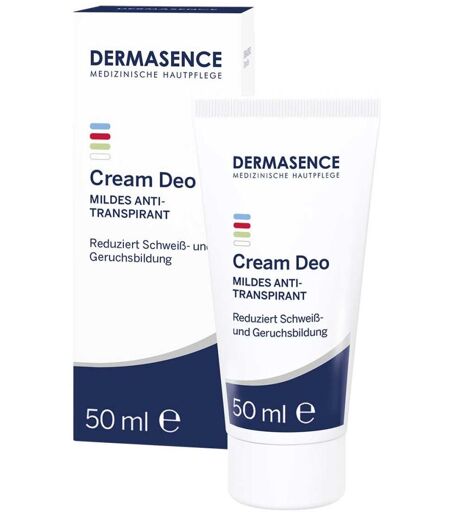 Anwendungsgebiet von Dermasence Cream DeoDermasence Cream Deo – Sanfter Schutz vor Achselnässe & SchweißgeruchSpeziell für die empfindliche Haut im Achselbereich sowie bei schwitzenden Händen und Füßen entwickelt: Das Dermasence Cream Deo reguliert übermäßige Transpiration, indem es die Hautporen sanft zusammenzieht. So wird der Schweißfluss reduziert, und Achselnässe sowie Schweißflecken werden spürbar gemindert.Dank seiner milden, antibakteriellen Formel hemmt es langfristig die Geruchsbildung und sorgt für ein trockenes, frisches Hautgefühl. Sanft zur Haut, stark gegen Schweißgeruch!Wirkstoffe / Inhaltsstoffe / ZutatenDermasence Cream Deo enthält:Aqua, Aluminum Chlorohydrate, Isopropyl Palmitate, Glycerin, Steareth-2, Cetyl Alcohol, Steareth-21, Sodium Carbomer, Potassium Sorbate, Sodium Benzoate, Allantoin.GegenanzeigenBei bekannter Überempfindlichkeit gegenüber einem der oben genannten Inhaltsstoffe sollte das Produkt nicht angewendet werden.DosierungAnwendungsempfehlung von Dermasence Cream Deo:Nach der schonenden Reinigung, z.B. mit DERMASENCE Adtop Wasch- und Duschlotion auftragen.Hinweis: Mit dem Spenderkopf nach unten anwenden, damit die Creme nachfließen kann. Bitte auf dem Spenderkopf stehend lagern.Dermasence Cream Deo können in Ihrer Versandapotheke www.apotheke.at erworben werden. ...