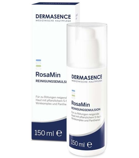 DERMASENCE RosaMin Reinigungsemulsion Schonende, seifenfreie Reinigungsemulsion für die empfindliche zu Rosacea neigende, reaktive Haut. Sie ermöglicht eine besonders sanfte Reinigung ohne hautstrapazierendes Reiben. Während der Reinigung werden die empfindlichen Gefäße durch den pflanzlichen 5-fach-Wirkkomplex gestärkt. Panthenol und Allantoin beruhigen die Haut. Die leichte, erfrischende Emulsion hinterlässt ein angenehmes Hautgefühl.Eigenschaften: Milde Reinigungsemulsion für die empfindliche, zu Rosacea neigende Haut Für eine sanfte Reinigung ohne hautstrapazierende Reibung Stärkt mit 5-fach-Wirkkomplex die sensiblen Gefäße der Haut und beugt Rötungen vor Panthenol beruhigt die Haut, Spannungsgefühle werden gemindert Erhält die natürliche Barrierefunktion der Haut und kann Irritationen und entzündlichen Prozessen vorbeugen Ideal zur schonenden Entfernung von (Augen-)Make-up Dermatologisch getestet Seifenfrei ParfümfreiAnwendung: Morgens und abends auf der leicht feuchten Haut verteilen und mit lauwarmem Wasser abwaschen, oder mit einem in DERMASENCE Tonic getränkten Wattepad abnehmen. Zutaten: AQUA, PROPYLENE GLYCOL, ETHYLHEXYL STEARATE, BUTYLENE GLYCOL, CETEARYL ALCOHOL, GLYCERYL STEARATE CITRATE, SIMMONDSIA CHINENSIS SEED OIL, PANTHENOL, PHENOXYETHANOL, SODIUM CETEARYL SULFATE, XANTHAN GUM, ESCIN, ALLANTOIN, CAESALPINIA SPINOSA GUM, ETHYLHEXYLGLYCERIN, GLYCERIN, RUSCUS ACULEATUS ROOT EXTRACT, AMMONIUM GLYCYRRHIZATE, CENTELLA ASIATICA LEAF EXTRACT, HYDROLYZED YEAST PROTEIN, CALENDULA OFFICINALIS FLOWER EXTRACT, SODIUM CITRATE, CITRIC ACID ...