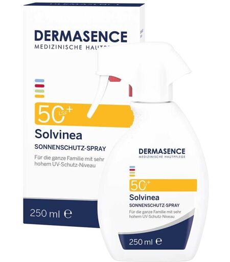 Anwendungsgebiet von Dermasence Solvinea Spray LSF 50+Dermasence Solvinea Spray LSF 50+ bietet sehr hohen UV-Schutz für die ganze Familie und wurde speziell an die Bedürfnisse empfindlicher Haut angepasst. Es schützt auch in tieferen Schichten. Das leichte Spray ist für jeden Hauttyp geeignet und dank der praktischen Sprühflasche perfekt in der Anwendung. Es wirkt mit einem sehr hohen Breitbandschutz vor UV-A- und UV-B-Strahlen. Zusätzlich schützt das Spray mit Tocopherol auch vor den Auswirkungen freier Radikale, die durch UV- und hochenergetisches sichtbares Licht entstehen. Die extraleichte Textur lässt sich gut verteilen, zieht sehr schnell ein, ohne zu kleben oder zu weißeln. Durch die parfümfreie, nicht komedogene Formulierung ist sie noch hautverträglicher.Wirkstoffe / Inhaltsstoffe / ZutatenDermasence Solvinea Spray LSF 50+ enthält: