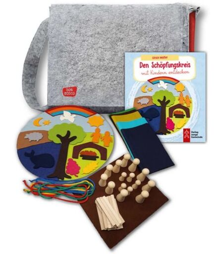 Bibelgeschichten erzählen mit dem SchöpfungskreisDer Schöpfungskreis lässt Kinder ab 4 Jahren staunen über Gottes wunderbare Schöpfung. Er lädt sie auf eine spannende Entdeckungsreise mit zehn Stationen zu zentralen Erzählungen und Personen des Alten Testaments (Noah, Abraham, Josef, Mose, Rut, David, Psalm 23 und Jona) ein. Die Kinder erleben, wie Gott zu uns Menschen steht: Er ist der, der für uns da ist – auch heute. Sie erfahren, dass sie bei Gott geborgen sind und er ihnen zutraut, ihren eigenen Weg zu finden und zu gehen. Kinder entdecken die Spuren des lebendigen GottesDer Schöpfungskreis ist eine Einladung, mit Gott groß zu werden. Lassen Sie sich überraschen, wie die Kinder Spuren des lebendigen Gottes in unserer Welt entdecken, und was sie selbst mit den einzelnen Elementen des Schöpfungskreises (Himmel, Erde, Meer, Sonne, Mond, Sterne, Regenbogen, Pflanzen, Tiere, Menschen, Haus, Tisch, Brot, Ähren und Trauben) verbinden, wenn sie mit Freude das Ganze immer wieder neu zusammenfügen! Natürliche Materialien: Filz, Baumwolle und Holz Der Schöpfungskreis ist ein ganzheitliches und sinnorientiertes religionspädagogisches Konzept von Ulrich Walter. Es wurde auf vielen Fortbildungen für Erzieherinnen und Lehrkräfte in den letzten Jahren ständig weiterentwickelt und hat sich in der Praxis bewährt. Für diese Veröffentlichung wurde der Schöpfungskreis aus einem neuen ansprechenden Material gefertigt. Seine 22 Teile sind aus 1-3 mm starkem Filz hergestellt, der sich nicht nur haptisch gut anfühlt, sondern auch langlebig ist. Der Schöpfungskreis und seine Elemente sind dadurch beim Erzählen der vertrauten Geschichten noch leichter zu handhaben. Das Schöpfungskreis-Paket enthält zu den Filzteilen des Schöpfungskreises noch fünf farblich darauf abgestimmte Legetücher aus Baumwolle, einige Kegelfiguren, farbige Kordeln und Holzstäbe, die bei den einzelnen Beispielgeschichten im Begleitbuch verwendet werden. In der Erzähltasche enthalten: Viel Material und umfangreiches Begleitbuch mit Schritt-für-Schritt-Anleitungen Im Begleitbuch „Den Schöpfungskreis mit Kindern entdecken“ vermittelt Ulrich Walter, Schritt für Schritt und durch viele Fotos unterstützt, alles, was Sie zur eigenen Gestaltung der biblischen Erzählungen mit den Kindern brauchen. Eine Einheit zur Bündelung der vielen Eindrücke der Kinder und ein Abschlussgottesdienst für ein wunderbares Jahr der religionspädagogischen Arbeit mit ihren Kindern ergänzen das Angebot. Der Schöpfungskreis wird Ihnen und den Kindern immer wieder große Freude machen. Die Erzähltasche zum Schöpfungskreis enthält das Begleitbuch „Den Schöpfungskreis mit Kindern entdecken“; 22 bunte und feste Legeteile aus Filz, dazu fünf Legetücher, 15 Kegelfiguren, 20 Holzstäbe, und 4 farbige Kordeln mit je 1m Länge. ...