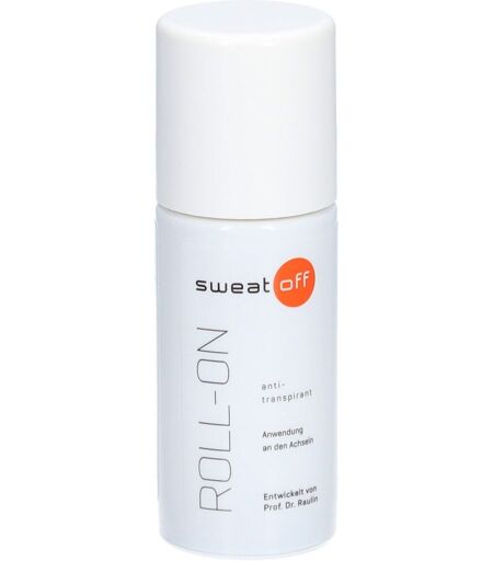 SWEAT-OFF® reduziert die Schweißbildung ohne Alkohol, Parfüm, Farb- und Konservierungsstoffe und gibt so ein wohliges, trockenes Hautgefühl. SWEAT-OFF®, der zuverlässige Schutz in allen Lebenslagen SWEAT-OFF® ist das hochwirksame Erfolgsdeo und Anti-Perspirant für zuverlässige, schnelle Hilfe gegen starkes Schwitzen und unangenehmen Körpergeruch; MADE IN GERMANY. SWEAT-OFF® reduziert und normalisiert die Schweißbildung an Achseln, Stirn, Knie- und Armkehlen, Rücken, Brust, Händen und Füßen ohne Alkohol, Parfüm, Farb- und Konservierungsstoffe. SWEAT-OFF® ist kein Medikament oder Arzneimittel! Die Regulierung der Schweißdrüsenfunktion erfolgt auf natürliche Weise. Der Trockeneffekt hält bis zu einer Woche an. Die hochwirksame Rezeptur von SWEAT-OFF® wurde von dem Dermatologen Prof. Dr. med. Christian Raulin aus Karlsruhe entwickelt und ist ein Kosmetikum welches unter Einhaltung strenger pharmazeutischer Qualitätskontrollen in Deutschland hergestellt wird. Dermatologisch getestet an der Universität Hamburg im Fachbereich Kosmetikwissenschaften. ...