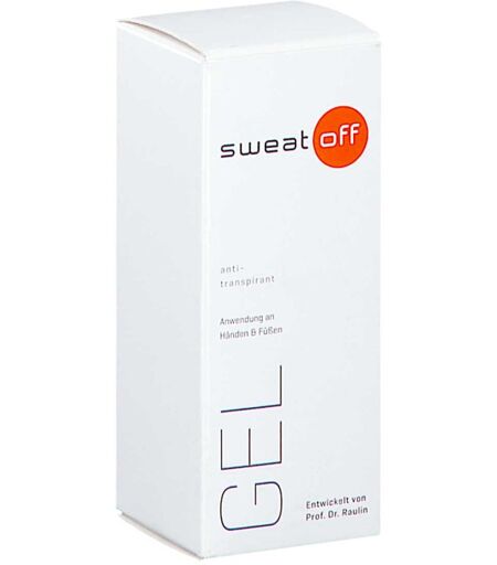 Anwendungsgebiet von Sweat-off Antitranspirant GelSweat-off Antitranspirant Gel schützt vor Schweiß und wurde für die Anwendung an den Händen und Füßen entwickelt. Der Schweiß wird im entsprechenden Anwendungsbereich zuverlässig gestoppt. Es entsteht kein Geruch, der nur von Schweiß zersetzenden Bakterien auf der Haut gebildet wird. Sweat-off Antitranspirant Gel ist in der Anwendung einfach wie eine Handcreme. Die kleine Verpackungsgröße ist praktisch für unterwegs. Wirkstoffe / Inhaltsstoffe / ZutatenSweat-off Antitranspirant Gel enthält:
