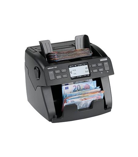 Für schnelles, präzises Zählen die beste Lösung — der ratiotec Banknotenzähler rapidcount T 575In der heutigen hektischen Geschäftswelt, in der Zeit buchstäblich Geld ist, hilft Ihnen der ratiotec Banknotenzähler rapidcount T 575, empfangenes Bargeld schnell und exakt zu zählen und zu verwalten. Geeignet ist das Gerät für EUR, CHF, GBP, USD. Freuen Sie sich über folgende praktische Eigenschaft: Wertzähler mit umfangreicher Echtheitsprüfung.Mit praktischer PrüfungHier werden die Geldscheine ganz genau unter die Lupe genommen und festgestellt, ob eine Banknote zerknittert, zerrissen, abgeklebt oder anderweitig beschädigt und daher nicht mehr für den Umlauf geeignet ist. Mittels UV-Licht kann das Gerät Geldscheine ganz einfach auf deren Echtheit untersuchen. Insgesamt prüft das Gerät mit folgenden Verfahren auf Echtheit: UV, MG, IR, MT, CIS, SD. Die Abkürzungen stehen für diese Prüfverfahren: MG: Die Erkennung von Magnettinte, die in vielen Banknoten enthalten ist.MT: Sensoren erkennen, ob Metallfäden vorhanden und korrekt positioniert sind.IR: Infrarot-Licht wird verwendet, um unsichtbare Merkmale zu erkennen.CIS: Contact Image Sensor, der verwendet wird, um die Banknote als Ganzes zu erfassen und auf Unregelmäßigkeiten zu prüfen.SD: Es wird durch Metallsensoren das Vorhandensein von Sicherheitsdrähten kontrolliert.Besonders übersichtlich dank LCD-DisplayFür eine schnelle und einfache Übersicht über den Zählvorgang hat der Artikel ein praktisches LCD-Display. Dieses zeigt auch die endgültige Summe an. Verbinden Sie das Gerät mit Ihrem PC, und zwar ganz einfach mittels folgender Schnittstelle: SD-Karte.Bis zu 1.000 Banknoten pro MinuteLegen Sie bis zu 300 Banknoten auf einmal ein und starten Sie die Zählfunktion. Bis zu 1.000 Banknoten pro Minute kann der ratiotec Banknotenzähler rapidcount T 575 zählen. Perfekt vorbereitet für die weiteren Schritte sind Sie dank der Bündelungsfunktion.Weitere Details im ÜberblickDie Größe des ratiotec Banknotenzähler rapidcount T 575 beträgt 26,8 x 26,3 x 25,5 cm (BxTxH) und das Gewicht 6,4 kg.Möchten Sie Ihre Arbeitsabläufe optimieren?Wenn Sie den ratiotec Banknotenzähler rapidcount T 575 bestellen, erhalten Sie die Lieferung inklusive Netzkabel und Reinigungspinsel. Bestellen können Sie den ratiotec Banknotenzähler rapidcount T 575 schnell und bequem hier bei uns online. ...