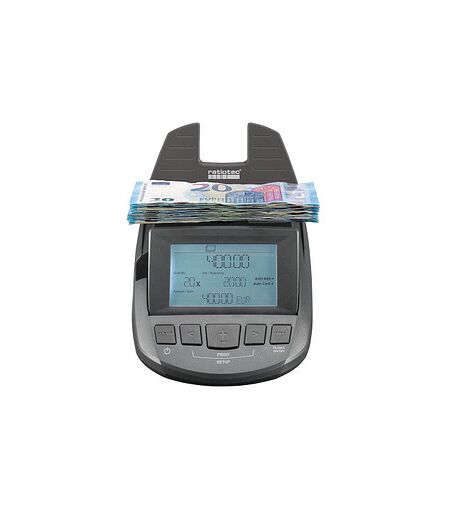 Die perfekte Geldzähllösung: die ratiotec Geldwaage RS 1000Das Zählen des Kasseninhalts oder der Tageseinnahmen sowie das Einrichten von Wechselgeldbeständen kostet Sie täglich wertvolle Arbeitszeit, die Ihnen die ratiotec Geldwaage RS 1000 ab sofort erspart. Mit ihr dauert eine komplette Kassenabrechnung weniger als 1 Minute! Das Exemplar ist für EUR, CHF, GBP geeignet. Freuen Sie sich über folgende praktische Eigenschaft: Auto-Continue-Funktion (Automatischer Durchlauf von 1 Cent bis 500 Euro).Besonders benutzerfreundlich: Mit Display und Verbindungsmöglichkeit zum ComputerDamit der Vorgang genau verfolgt und dokumentiert werden kann, verfügt der Artikel über ein praktisches LCD-Display. Dieses zeigt auch die endgültige Summe an. Verbinden Sie das Gerät mit Ihrem PC, und zwar ganz einfach mittels folgender Schnittstelle: USB.Die Maße im ÜberblickDas Hartgeldfach bietet genügend Platz für Ihre Münzen. Für Ihre Geldscheine gibt es ein separates Scheinfach. Die Abmessungen der ratiotec Geldwaage RS 1000 liegen bei 12,9 x 19,0 x 10,8 cm (BxTxH) und das Gewicht beträgt 0,4 kg. Sehr langlebig und zugleich funktional ist dieses Exemplar dank der guten Verarbeitung und seiner Beschaffenheit aus Kunststoff.Passt dieser Artikel zu Ihren Bedürfnissen?Wenn Sie die ratiotec Geldwaage RS 1000 bestellen, erhalten Sie die Lieferung inklusive Netzteil, Wiegeauflage, Münzschale und Kalibriergewicht. Machen Sie sich die Arbeit leichter und bestellen Sie die ratiotec Geldwaage RS 1000 einfach hier bei uns im Online-Shop! ...