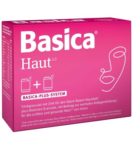 Eine schöne und gesunde Haut hat großen Einfluss auf unser ganzheitliches Wohlbefinden. Basica Haut Trinkgranulat enthält Nährstoffe für die gesunde Hautfunktion, Regeneration und Schutz der Zellen, sowie die Kollagenbildung.