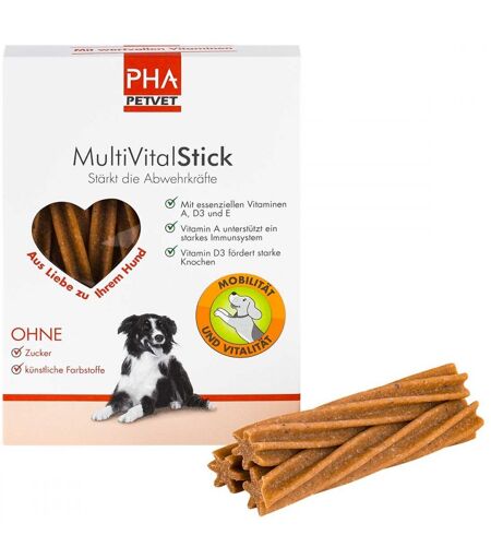 PHA MultiVitalStick eignet sich ideal als gesunde Belohnung für ein vitales Hundeleben. Angereichert mit den Vitaminen A, D3 und E.