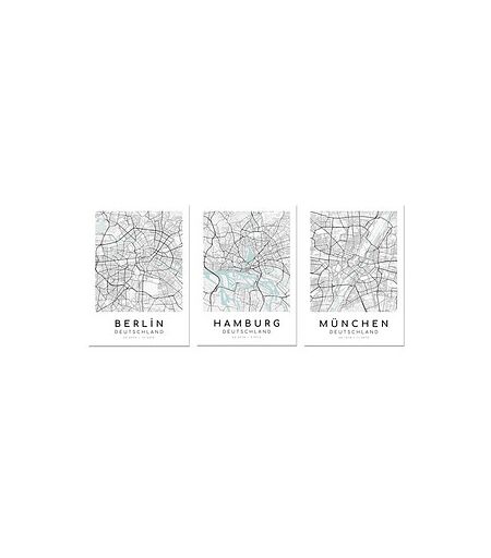 Eindrucksvolles LUMA Poster-Set : Ein Must-have für alle GroßstadtpilgererWenn Ihr Herz für Deutschlands Großstädte schlägt, ist das LUMA Poster-Set wie für Sie gemacht. Die drei im Set enthaltenen Poster zeigen die Stadtpläne von Hamburg, Berlin und München und bilden damit die perfekte Grundlage für eine beeindruckende Wandcollage, die bei Ihren Gästen garantiert für den Wow-Effekt sorgenQualität, die begeistert!Die Poster aus seidenmattem, extrastarkem 300 g Papier bieten eine besonders edle Haptik, lassen Räume erstrahlen und schmücken diese durch ihre langlebige Made in Germany-Qualität über Jahre hinweg.Vielgestaltige VerwendungsmöglichkeitenDie -Motive passen perfekt in Wohnbereiche, wie zum Beispiel ins Esszimmer, Wohnzimmer oder in den Flur. Auch in Büros, Konferenz- und Warteräumen spiegelt das LUMA Poster-Set Ihren modern geprägten Einrichtungsstil wider, sodass Sie damit voll im Trend liegen. Nie mehr kahle Wände: Bestellen Sie das LUMA Poster-Set direkt hier online und ergänzen Sie Ihr Interieur mit dieser modernen Dekorationsmöglichkeit! ...
