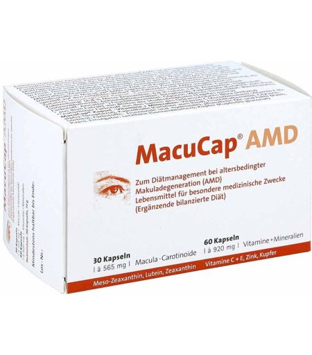 Anwendungsgebiet von Macucap Amd KapselnMacucap Amd Kapseln ist ein Nahungsergänzungsmittel zum Diätmanagement bei altersbedingter Makuladegeneration (AMD).