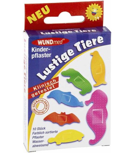 Anwendungsgebiet von Kinderpflaster lustige TiereKinderpflaster lustige Tiere sind Pflaster, die den besonderen Bedürfnissen Ihrer Kinder gerecht werden. Kinderpflaster lustige Tiere versorgen nicht nur zuverlässig kleinere Wunden und Hautabschürfungen, sondern lassen durch ihre farbliche Vielfalt und die niedlichen Tiermotive Verletzungen schnell vergessen. HinweiseEigenschaften von Kinderpflaster lustige Tiere:
