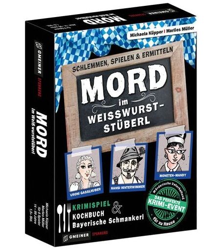 Wer hat „die Patin“ Elfriede Butterweck auf dem Gewissen? Schlüpfen Sie in die Rollen von Hansi Hinterwimmer & Co. und ermitteln Sie gemeinsam mit bis zu 7 Gästen den Mörder. Sie dürfen kombinieren, stänkern und spionieren, was das Zeug hält! Und da für ausgebuffte Halunken ein gutes Essen in jeder Lebenslage dazugehört, verraten sie Ihnen sogar ihre liebsten Schmankerl-Rezepte:HANSI HINTERWIMMERS Schwammerlsuppe ist zum Sterben gut … Für die Fleischpflanzerl der FREIFRAU VON FILZMOOS würde manch einer seine Oma verkaufen … VRONI GASSLHUBERS Bavarian Burger sind mordsmäßig köstlich … Laden Sie Ihre Gäste zu einem gschmackigen Schmankerl-Buffet und mörderisch guter Unterhaltung beim perfekten Krimi-Event! ...