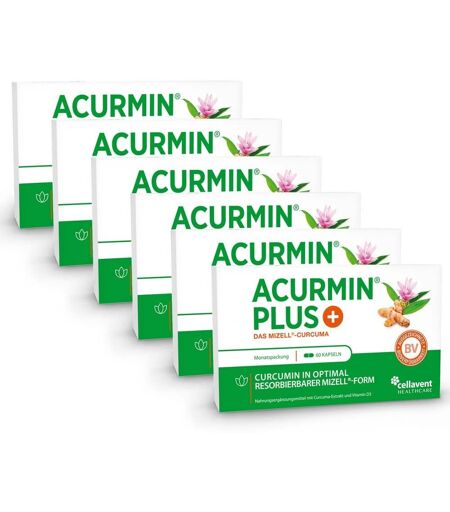 Nahrungsergänzungsmittel sind kein Ersatz für eine ausgewogene und abwechslungsreiche Ernährung und eine gesunde Lebensweise. Acurmin PLUS – 185x bessere Curcumin Aufnahme Acurmin PLUS Kurkuma Kapseln enthalten hochwertiges Curcumin in einer innovativen Mizell-Formulierung, die eine 185x bessere Aufnahme im Vergleich zu herkömmlichen Kurkuma Kapseln ermöglicht. So wird der wertvolle Pflanzenstoff optimal vom Körper aufgenommen und sorgt für einen konstanten Curcumin-Spiegel bis zu 24 Stunden. Warum Acurmin PLUS? Original Mizell Curcuma Kapseln mit 95 % Curcuma-Extrakt 2 Kapseln entsprechen 10.000 mg Kurkuma Pulver pro Tagesdosis 185x bessere Aufnahme im Vergleich zu herkömmlichen Kapseln Flüssiger Curcumin Kern in kleinen Softgel-Kapseln Wissenschaftlich entwickelt mit Oncotrition, einer Ausgründung des Fraunhofer Instituts Produktion nach pharmazeutischen Standards in Deutschland Laborgeprüfte Qualität (C-14 Methode) Sichere, luftdichte Blisterverpackung Maximale Bioverfügbarkeit für nachhaltige Curcumin-Aufnahme Curcumin, der wertvolle Inhaltsstoff aus Kurkuma, ist von Natur aus schwer vom Körper aufzunehmen, da es fettlöslich ist und sich in der wässrigen Umgebung des Körpers schlecht löst. Acurmin PLUS nutzt die innovative Mizell-Technologie: Das Curcumin wird in winzige Trägerstrukturen eingebettet, die sowohl wasser- als auch fettlöslich sind. Dadurch wird das Curcumin wasserlöslich und 185-mal besser bioverfügbar, sodass es optimal vom Körper aufgenommen werden kann und einen konstanten Curcumin-Spiegel für bis zu 24 Stunden aufrechterhält. Deine Vorteile: Maximale Aufnahme: Mizell-Technologie macht Curcumin wasserlöslich und erhöht die Bioverfügbarkeit. Stabiler Effekt: Konstanter Curcumin Spiegel über 24 Stunden. Einfache Einnahme: Kleine, leicht zu schluckende Softgel-Kapseln für eine unkomplizierte Anwendung. Zutaten: Curcumin (min 55mg), Vitamin D (14µg). Zusammensetzung: Emulgator Polysorbat 80, Gelatine (Kapsel), Glycerin (Feuchthaltemittel), Curcuma-Extrakt, Cholecalciferol (Vitamin D). Nährstoffe pro Kapsel pro Tagesmenge (2 Kapseln) % NRV* Curcumin 27,5 mg 55 mg ** Vitamin D 37 µg 14 µg 280 % * Nutrient Refernce Values (Referenzmenge nach EU-Lebensmittelverordnung) ** Keine Empfehlung der Europäischen Union (EU) vorhanden Verzehrempfehlung: Täglich zwei Kapseln. Vorzugsweise jeweils 1 Kapsel morgens und abends zu den Mahlzeiten. Kapseln nicht lutschen oder kauen. Hinweis: Die angegebene empfohlene tägliche Verzehrmenge darf nicht überschritten werden. Aufbewahrung: Kühl (6-25 °C) und lichtgeschützt lagern. Außerhalb der Reichweite von kleinen Kindern aufbewahren. Nettofüllmenge: 360 Kapseln = 259,6 g Herstellerdaten: Cellavent Healthcare GmbH Am Trippelsberg 43 D-40589 Düsseldorf ...