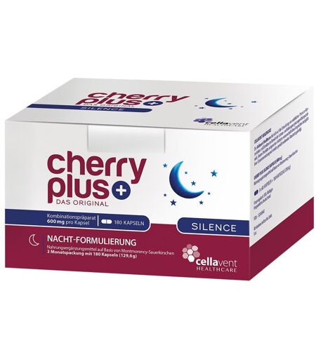 Anwendungsgebiet von Cherry Plus Das Original Silence KapselnCherry Plus Das Original Silence Kapseln sind ein Nahrungsergänzungsmittel auf Basis von Montmorency-Sauerkirschen mit Magnesium, Zink und Vitamin B6. Magnesium und Vitamin B6 tragen zu einer normalen psychischen Funktion bei und fördert eine normale Funktion des Nervensystems. Zink schützt zusätzlich die Zellen vor oxidativem Stress.